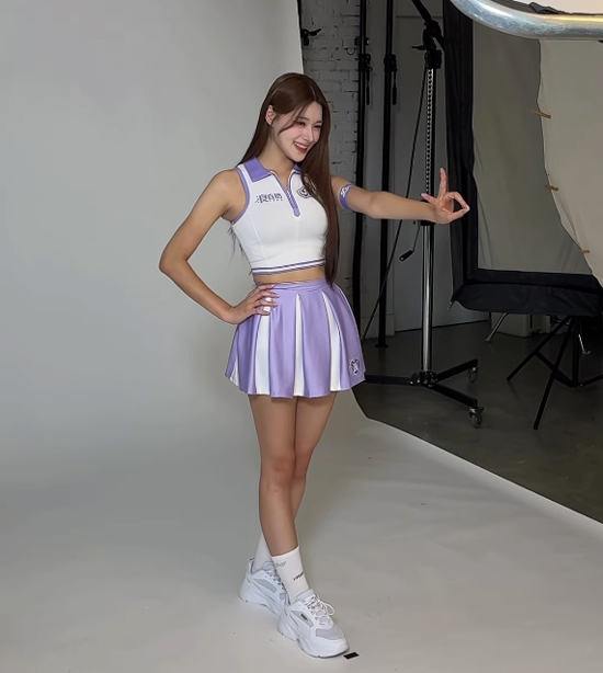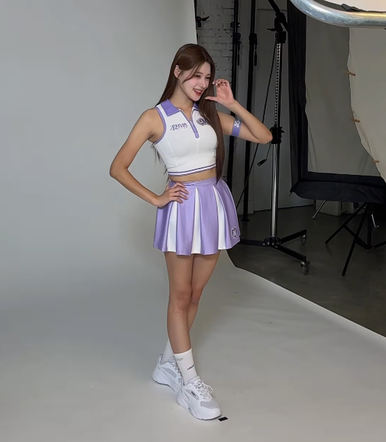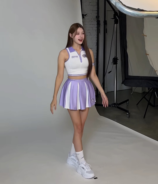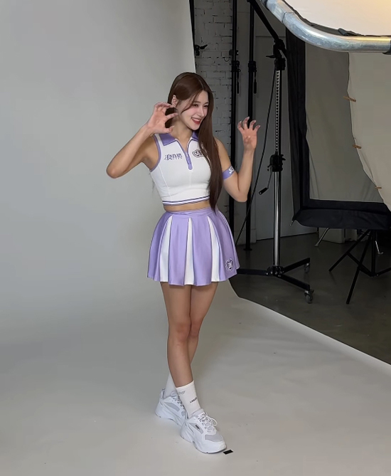 영상에는 이예빈이 보라색 치어리더 의상을 입고 사진 촬영을 하는 모습이 담겨 있었다.