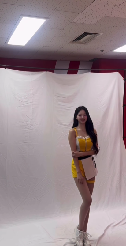영상 속 이연진은 프로배구 KB손해보험 스타즈의 치어리딩 유니폼을 입고 촬영에 임하고 있었다.
