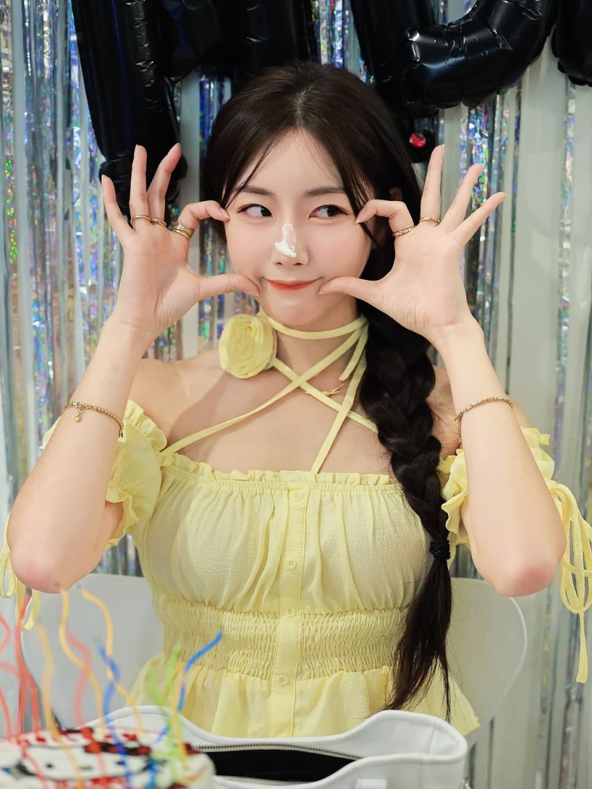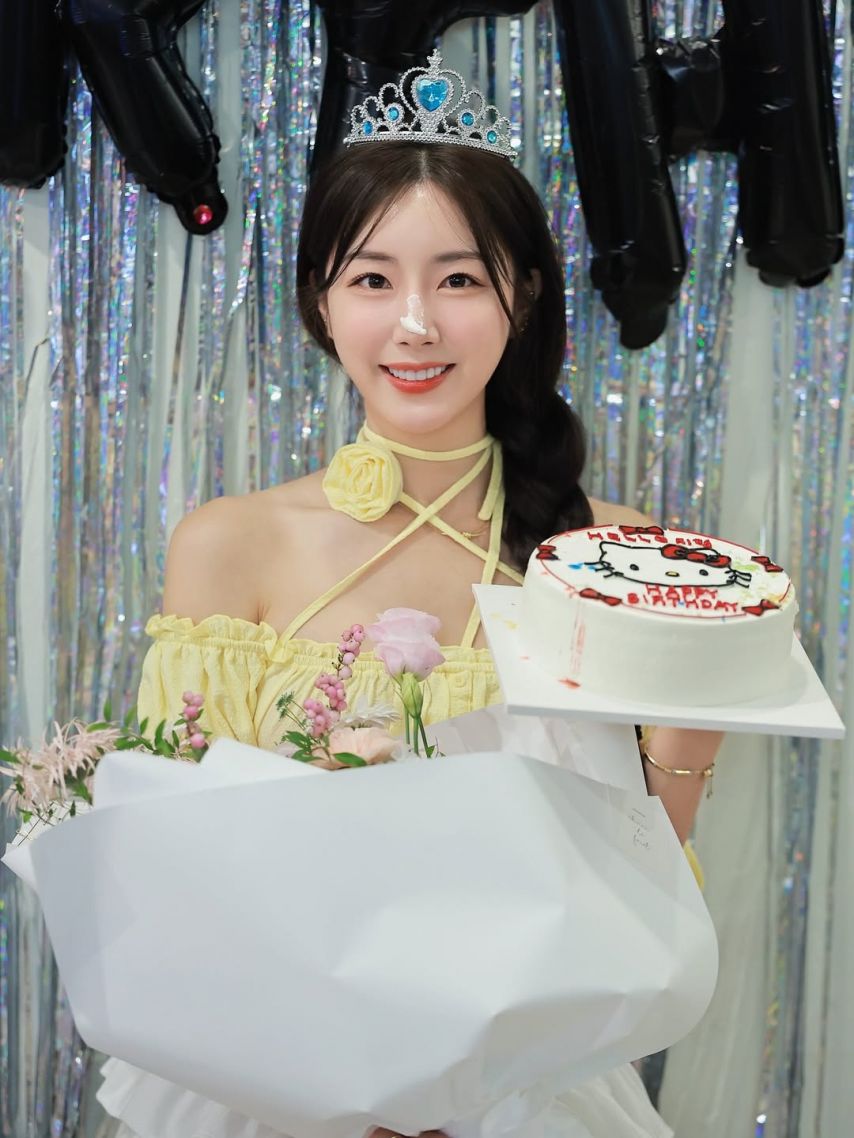 특히 코끝에 묻은 케이크 크림을 장난스럽게 보여주거나, 왕관을 쓴 채 케이크를 한입에 베어무는 등 사랑스러운 표정으로 팬들의 마음을 녹였다. 사진 속 자연스러운 웃음과 유쾌한 포즈가 자신의 매력을 한껏 드러냈다.