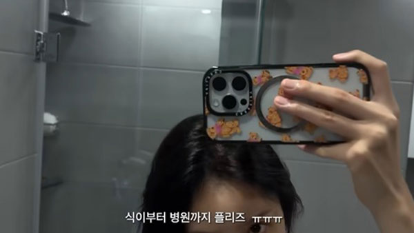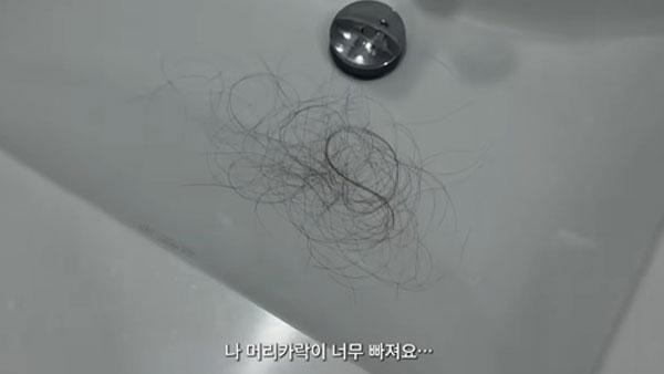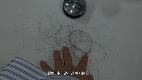 영상에서 김지영은 외출 준비에 한창이었다. 그는 화장실 바닥에 빠진 머리카락을 보여주며 “머리카락이 너무 빠진다”고 호소했다. 세면대에도 머리카락이 적지 않게 쌓여 있었고, 김지영은 “한 번 머리 말리면 이만큼 빠진다. 말도 안 돼, 진짜”라며 걱정스러운 표정을 지었다.