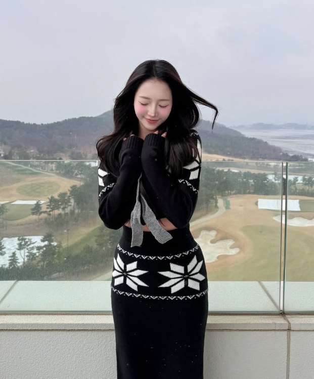 사진 속에서 이연진은 검은색 스웨터와 치마를 입은 채로 눈이 내리는 야외로 나갔는데, 이때 배와 허리가 다 드러나는 상의로 팬들의 눈길을 사로잡았다.