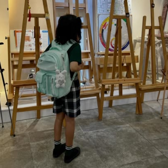 이어지는 사진에서는 커다란 가방을 맨 채 미술용품을 둘러보는 로아 양의 뒷모습이 담겨 사랑스러운 분위기를 자아냈다.