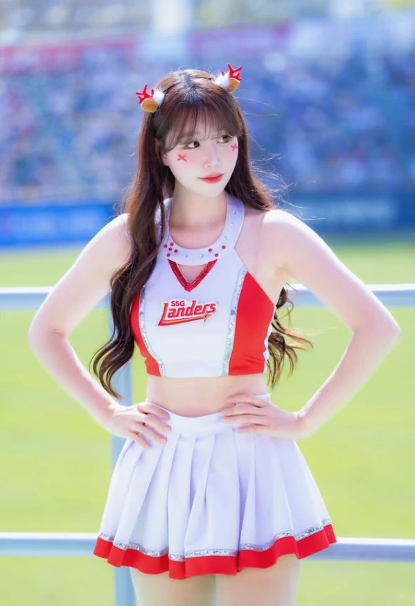 사진 속 김도아는 SSG 랜더스의 유니폼과 치어리더복을 입은 채 응원에 임하고 있었다.