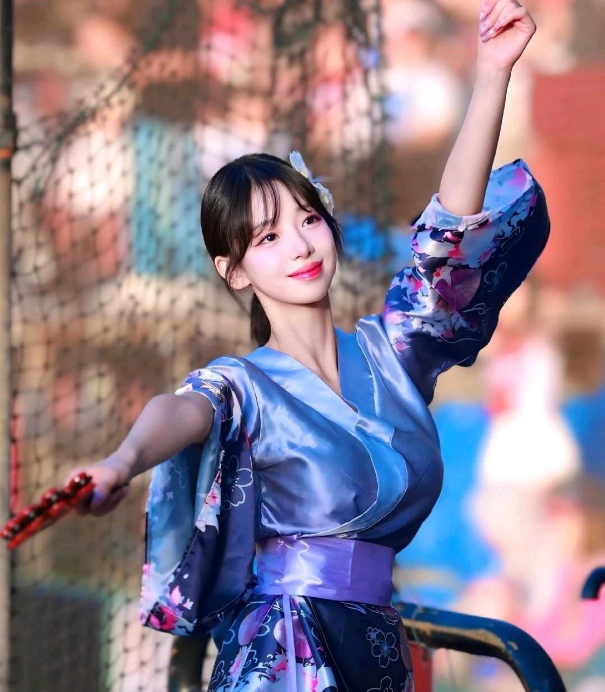 사진 속에서 우수한은 기모노를 입은 채로 경기장에서 치어리더 활동을 해 눈길을 끌었다. 머리에도 꽃 장식을 하면서 청순한 매력을 뽐냈다.